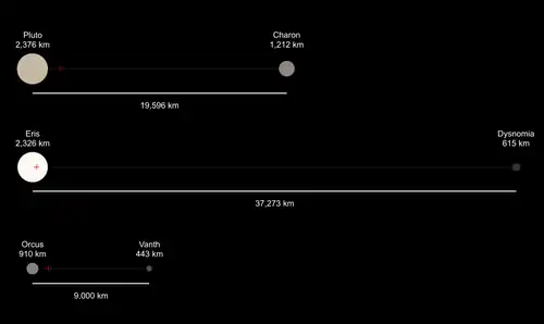- ^ a b Rabinowitz, David L.; Owainati, Yasi (November 2014). The synchronous rotations of Eris/Dysnomia and Orcus/Vanth binary systems. 46th DPS Meeting. American Astronomical Society. Bibcode:2014DPS....4651007R. 510.07.