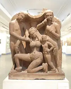 - Sculpture from Kushana period: A mottled red sandstone sculpture belonging to the 2nd century A.D., which depicts a Scene of a Courtesan's House. It is kept in the National Museum, Delhi.