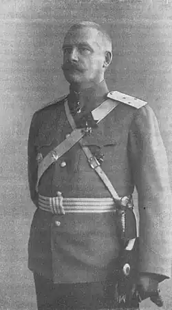 Vasily Egorovich Flug (Russian: Василий Егорович Флуг; March 19, 1860 – December 3, 1955) was an Imperial Russian Army General of the Infantry. A career military officer, he served in the Boxer Rebellion, Russo-Japanese War, and World War I, before joining the White movement during the Russian Civil War. Like many other officers, he went into exile after the end of the Russian Civil War, initially moving to Yugoslavia. After World War II, Flug went to the United States, where he died.