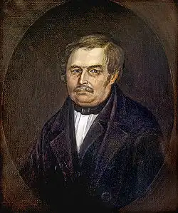 Vasili Afanasyevich Gogol-Yanovsky[1][2] (Russian: Василий Афанасьевич Гоголь-Яновский; 1777 – 31 March (11 April) 1825), also known as Vasyl Panasovych Hohol-Yanovsky[3][4][5][6] (Ukrainian: Василь Панасович Гоголь-Яновський), was an author of a number of theater pieces in Russian and in Ukrainian and father of the writer Nikolai Gogol. He was the landlord of the village of Vasilyevka (now Hoholeve, Poltava Oblast) and descendant of Ukrainian Cossack noble families of Gogol (Hohol) and Lizogub.
