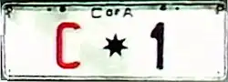 The registration plate of the Prime Ministerial Limousine was C*1 (i.e. Commonwealth No. 1) with a seven-pointed Commonwealth Star. This was updated on 11 November 2015, showing C (Australian Government crest image) 1.[20] Other Commonwealth fleet cars for official transport carry "C of A" plates in the form C-nnn.