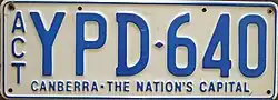 | Australian Capital Territory & Jervis Bay Territory | YAA-000 to YZZ-999 | YAA•000 | 1968–1998 | YAA-000 to YZZ-999 | Jervis Bay Territory original allocation YZO-000 to YZO-999, exhausted in 2013. |