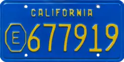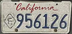 The U.S. state of California first required its residents to register their motor vehicles in 1905. Registrants provided their own license plates for display until 1914, when the state began to issue plates.[2] Plates are currently issued by the California Department of Motor Vehicles.