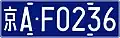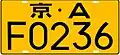 Vehicle type Colouring Size (mm) Notes Light passenger/cargo vehicles White on light green 440 x 140 May come with a letter replacing the first number. Heavy goods vehicles White on violet Heavy/light hand-assisted tractors, special-use vehicles, electric cars