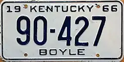 - ^ a b Tanner, Eric N. "Kentucky License Plates". allaboutlicenseplates.com. Retrieved December 3, 2015.