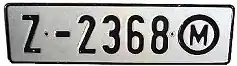 From 1979 to 1995, all number-plates in Malta used the format Z-9999 (a letter and 4 numbers, with a hyphen between the letter and the first number). Towards the right there was the letter M (for Malta) in a circle. Although all characters were printed in black, the background colour varied according to the vehicle's use: