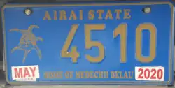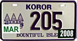- ^ "License Plates of Palau". Worldlicenseplates.com. Retrieved 18 May 2018.