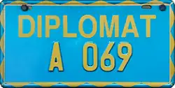 | 2020 (?) | Golden yellow serial on light blue background; wavy golden yell and light blue border | golden yellow "DIPLOMAT" above serial number | A 123 | Republic of Palau |