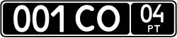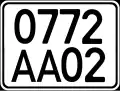 The plate design is black characters on a white background. The number of individuals differs from the format by the presence of only three digits at the beginning of the number. Since 2014, the size of letters and numbers is the same.