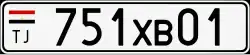 Transit registration plates in Tajikistan are produced with no set standard and the manufacturer of the plates will make a simple but legal copy. Often printed on paper.