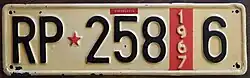 - Temporary plates had RP (registrovano privremeno) on the place of the district code, followed by three or four digits, a vertical red band containing the year of registration and a numerical denotation of the republic where the vehicle was temporarily registered.
