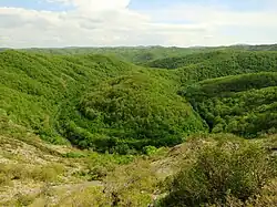 The Veleka drainage basin covers a territory of 995 km2, of which 792 km2 are in Bulgaria.[3] To the northwest and the north along the Bosna Ridge it borders the basins of the Fakiyska reka, the Izvorska reka, the Ropotamo, the Dyavolska reka and the Karaagach; to the southwest along the crest of the Strandzha it shares a small boundary with the Maritsa drainage of the Aegean Sea; to the south it borders the basin of the Rezovska reka. The main tributaries are the Mladezhka reka (40 km, left)[7] and the Aydere or Mechi Dol (26 km, right).[1][8][2] About 60% of the river basin is forested.[5]