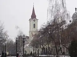 The city belongs to the group of so-called planned organized settlements.[28] Plans of streets and crossroads were completed in the second half of the 18th century according to the standard city plans of the time used for the construction of new settlements in Banat. Those plans defined settlements with regularly lined and wide streets intersecting at right angles, with a central town square, market place, church, city hall, school, inn, etc.