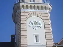 The official coat of arms of the city dates back to the Austrian rule and the 18th century. It is derived from the coat of arms of the District of Velika Kikinda[7] which was issued by Maria Theresa of Austria on 12 November 1774. The Coat of Arms represents a hand holding a sabre on which an Ottoman Turkish head is impaled. It symbolizes the fight of Serbs and the majority ethnic Hungarians at that time, against the Turks during the Military Frontier period[7] and the military contributions of the population of Kikinda during the Austro-Ottoman Wars.