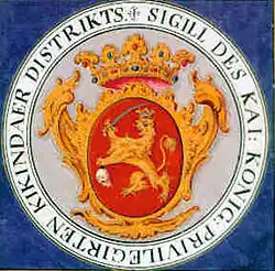 About twenty years after the establishment of the settlement, on 12 November 1774, the Austrian Empress Maria Theresa, by way of a special charter, formed the Velikokikindski privileged district – Regio-privilegiatus Districtus Magnokikindiensis, as a distinct feudal governmental administrative unit with headquarters in Kikinda.[18] Beside Kikinda, the district included another nine settlements of the Serb border military establishments in North and Central Banat: Srpski Krstur, Jozefovo (today part of Novi Kneževac), Mokrin, Karlovo (today part of Novo Miloševo), Bašaid, Vranjevo (today part of Novi Bečej), Melenci, Kumane and Taraš. During that period, the inhabitants of these places had substantial economic and even political privileges within the Habsburg monarchy. The District functioned, with some interruptions, until 1876 when it was abolished, and Kikinda was allocated both organizationally and administratively to the direct authority of the Torontal County with its headquarters in Veliki Bečkerek (today Zrenjanin), which covered most of the territory of present-day Serbian Banat.