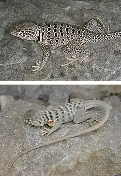 | Crotaphytus antiquus (top: male; bottom: female) | |