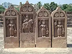 Four Paliyas, one dedicated to man and three to women at Chhatardi, Bhuj, Kutch, Gujarat, India
