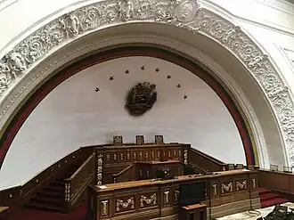 On 25 August, the conflict between the Constituent Assembly and the Congress openly broke out. Taking advantage of a parliamentary recess, the pro-government constituent majority occupied the Federal Legislative Palace, suspended the sessions of the Congress, reduced its commissions to a minimum and created a delegated commission made up of 23 congressmen who could legislate, but always subject to the veto of the Constituent Assembly in important matters.[16][17] Congressmen from Democratic Action, Copei and Project Venezuela protested the measure, which they called a coup d'état, and called for an emergency session in the Federal Palace. Aristóbulo Istúriz, president of the Constituent Assembly warned them that "the people would shut them down" if they tried to do so.[18] On 27 August, opposition congressmen tried to enter the Congress but were repelled by Chavista sympathizers, who injured thirty of the first ones when they tried to jump over the fence surrounding the building.[19] The Catholic Church mediated between the Constituent Assembly and the Congress, but although they managed to reach an agreement, the Congress continued to be reduced to its new role of delegated commission, sharing the building with the Constituent.[19] At the time, public opinion interpreted the congressional protests as vain attempts by the discredited traditional political class to stop the changes.[16] At the same time that the Constituent Assembly minimized the Congress, it also created an "emergency commission" to reorganize the Judicial Power. Due to a sentence issued by the Supreme Court at the beginning of the year, the Constituent Assembly could do so as the "original power". The decision was challenged, but when Cecilia Sosa, the president of the high court, resigned after realizing that her colleagues were going to ratify the January decision, as she considered that the rule of law was being violated with the decision:[20]