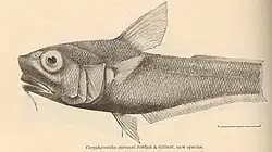 - Ventrifossa nigrodorsalis C. H. Gilbert & C. L. Hubbs, 1920 (Spinaker grenadier) [2]