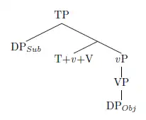 In Tagalog, there can be adverbs between the verb and the object in VOS order, implying that the verb and the object can be separated, and do not form a constituent.[4] In Tongan, there is an asymmetry between case-marked arguments and clitic pronouns: the clitics surface pre-verbally, whereas the case-marked nouns can only surface post-verbally (Otsuka 2005). Otsuka (2005) proposed that the subject clitic undergoes head-movement to T0, and attaches to the verb, whereas the case-marked subject moves to Spec-TP. She concludes that only verb head-movement can explain such a syntactic asymmetry in Tongan.