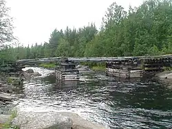 In the northernmost sector of the Continuation War, the part of the river in the area around Kandalaksha defined the front line from September 17, 1941 until September 1944.[2] On both banks of the river there are numerous ruins of military installations, fortifications, trenches, and fences left over from this war.