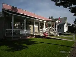 During the decade of 1860–1870, Princeton was the administrative centre for the Similkameen District.[13] In the 1870s, the fork was a cattle centre from which herds were driven over the mountain trail to Hope.[14] In the 1880s, Ah Tuck ran a log cabin Chinese boarding house. In 1897, James Wallace opened[15] the large two-storey hotel called Wallace House, which fire destroyed in 1911.[16] In 1899, John Henry Jackson completed the two-and-a-half-storey log hotel called Jackson House. On selling and enlarging in 1906, it was renamed the Great Northern Hotel but burned down in 1912.[17]