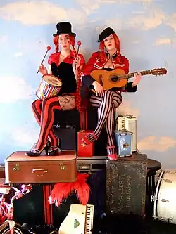 Vermillion Lies were a cabaret band from Oakland, California. The band consisted of siblings Kim Boekbinder and Zoe Boekbinder. They are known for incorporating elements of circus and folk into their music. The band stated on their website on August 7, 2009: "Our exciting news today is that Vermillion Lies is giving way to two solo careers! We will still be playing some shows together as Vermillion Lies, but most of our energies and attentions will be going to our solo music at this time."[1]