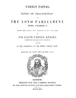 - ^ See also the Verney Papers edited for the Camden Society in 1853–1854.