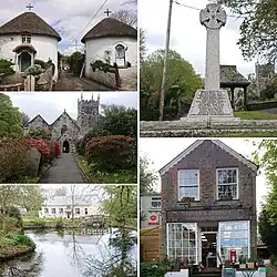 ![]() Clockwise: Veryan Round Houses, Veryan Memorial Cross, Veryan & Portloe Stores, Veryan Pond & Parish Hall, St Symphorian's Church | |