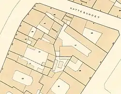 The site was part of two separate properties in the late 17th century. In Copenhagen's first cadastre of 1689 they were listed as No. 225 and No. 226. They were owned at that time by grocer (høker) Mikkel Jostsen (No. 225) and cooper Jacob Pedersen (No. 226). The properties were later merged into a single property. In the new cadastre of 1756, it was listed as No. 239. The owner at that time was tobacco spinner Niels Christensen Tromp.[1]
