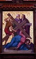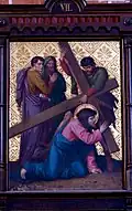 | III. | Jesus falls for the first time. | The male choir sings Jesus cadit, the female choir continues with Stabat Mater | |