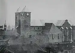 Fire damaged the church again in 1567. 27 June 1726 the city and the church suffered devastating fire damage leaving the bare walls and vaulting standing. The old cathedral remnants were enclosed in a Baroque style building that was poorly constructed by 1770. The towers were capped with short "coffee pots" according to locals who remembered the high spires before the fire.