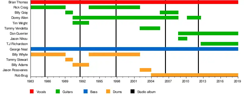 | Past members | Don Guerrier Chris "Boo" Buczek Donny Allen Billy Adams(BA) Jason Rossvannes Jason Nikou Tommy 'V' Vendetta John Guarascio Tim Franquist Kevin Clifford Tim Wright Kenny Hill Billy Gray Rick Craig Bill Whyte Tommy Stewart |