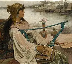Lagye also flirted with Orientalism and created various compositions depicting scenes from old Egypt such as The lyre (Sotheby's New York auction of 1 February 2018 lot 863).[23]