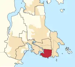 The riding comprises most of the city of Victoria, the provincial capital. It is bounded by the coastline to the south and west including the downtown core; by the Municipality of Oak Bay to the east, by Bay Street and Haultain Street to the north.