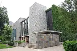 E.J. Pratt Library is the main library of Victoria University.[15] It was built in 1961 and is located at the south end of the quadrangle. The site of the library and the adjacent Northrop Frye Building was originally on the route of Queen's Park Crescent. The road was pushed south into Queen's Park to make way for the new buildings.