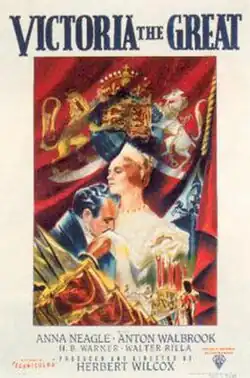 Victoria the Great is a 1937 British historical film directed by Herbert Wilcox and starring Anna Neagle, Anton Walbrook and Walter Rilla.[2] When Laurence Housman's play Victoria Regina was banned by the Lord Chamberlain (in 1935 the royal family could not be shown on the British stage), its subsequent Broadway success prompted King Edward VIII to commission producer Herbert Wilcox to turn it into a film, commemorating the centenary of Victoria's reign.[3] The film biography of Queen Victoria concentrates initially on the early years of her reign with her marriage to Prince Albert and her subsequent rule after Albert's death in 1861. It was released in the year of Victoria’s great-grandson King George VI's coronation, which was also the centennial of Victoria's own accession to the throne. The movie was so successful that a sequel appeared the following year, Sixty Glorious Years.[4]