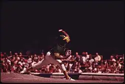 Blue had a 24–8 record in 1971, an AL leading 1.82 ERA and eight shutouts, and struck out 301 batters, winning both the Cy Young Award and American League Most Valuable Player Award.[14][15][16][17] He also led the American League in complete games (24), shutouts (8), and earned run average (1.82).[18] That season, the Athletics won the American League West title for the franchise's first postseason berth since the Philadelphia Athletics in the 1931 World Series. He got off to a terrific start, going 10–1 when he linked up with Boston's Sonny Siebert, who was 8–0, in a dramatic May matchup in Boston. The game was won by Siebert and the Red Sox 4–3, and remains what is considered one of the most dramatic games in Fenway Park history.[19] He was the youngest American League player to win the MVP Award in the 20th century.[20] He was the starting pitcher for the American League in the 1971 All-Star Game. In 1971 he became the only player ever to be a starting pitcher in the league opener (against the Washington Senators), the All-Star Game, and the playoff opener (against the Baltimore Orioles) in the same season. In 1971, Blue was on the covers of Sports Illustrated and Time magazine.[21][22] In 1972, his success in baseball led Blue to a small role in the film Black Gunn, starring Jim Brown.[23]