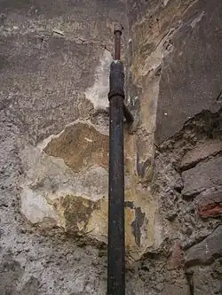 Already at the oldest model, the Fool's Tower has at the roofridge a lightning rod or a Blitzfänger. Two of its mounting plates in the inner court still exist. The apparatus, devised by the Czech priest and inventor Prokop Diviš and installed in 1754, was probably not intended as lightning protection. Josef II knew well the attempts of Diviš, which specifically concerned an assumed health benefit from currents. Whether the lightning conductors were used for the treatment of the patients has not been clarified.