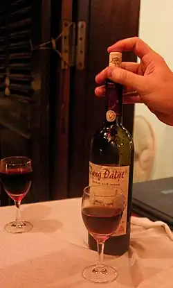 Vietnamese wine is wine produced in Vietnam. The area was first cultivated for viticulture during the French colonial rule of the region in the late 19th century. The region's tropical climate was ill-suited for the type of Vitis vinifera that the French colonists were used to and the wine industry turned its attention to fruit wine production. The late 20th century saw a renewed focus on the development of Vitis vinifera with the assistance of flying winemakers from regions like Australia. In 1995, a joint venture with Australian winemakers started an aggressive planting scheme to reintroduce international grape varieties like Cabernet Sauvignon and Chardonnay to land that was until recently littered with landmines left over from the Vietnam War.[1]