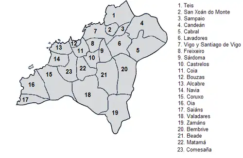 Vigo is administratively divided into 23 parroquias ("parishes").