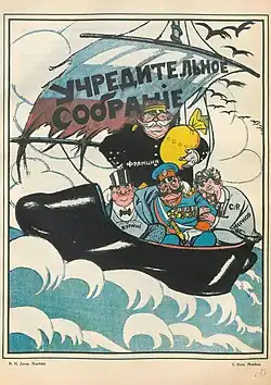 After the Bolshevik seizure of power on 25 October 1917, Chernov initially opposed armed resistance.[91] He was briefly involved in a plan at Mogilev to form an alternative socialist government, but this failed due to lack of broad support and internal party opposition.[92] He participated in the Second All-Russian Peasants' Congress in November 1917, where he was elected honorary chairman but failed to secure the actual chairmanship against the Left SR Maria Spiridonova.[93]
