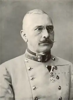 Viktor Julius Ignaz Ferdinand Graf[1] Dankl von Kraśnik (Born as Viktor Dankl; 18 September 1854 – 8 January 1941) was a highly decorated Austro-Hungarian officer who reached the pinnacle of his service during World War I with promotion to the rare rank of Colonel General (Generaloberst). His successful career met an abrupt end in 1916 due to both his performance on the Italian front and health issues. After the war, he would be a vocal apologist for both his country's war record and the dethroned Habsburg monarchy.