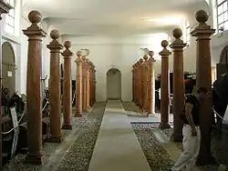 The chapel of Sant'Andrea (St. Andrew), was built in 1708, at the same time as the original barchesse, to designs by Domenico Rossi. It is attached to the northern barchessa and to the east of the gate arch. The building served both the village, accessed it from outside the courtyard, and the family, who could gain access from within. The building is an octagon). The entrance façade has two pairs of columns at either side and has a pediment adorned with statues and marble groups by Pietro Baratta. Inside, in the sacristy, there are two marble altars by Giuseppe Bernardi-Torretti, and in the hall two other marble altars with altarpieces worked in relief, also by Torretti.