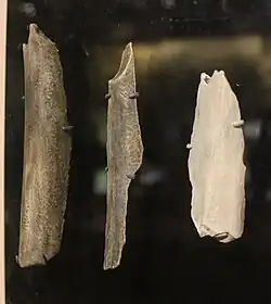 The Neanderthal remains at Vindija were found in a Mousterian context; some of the remains occurred in a level with some mixed Aurignacian artefacts.[1] Several of the Neanderthal samples from Vindija also yielded surprisingly late dates when directly dated, yielding dates as late as 28,000–29,000 BP. This led to suggestions that Neanderthals might have survived longer than previously thought and that the Neanderthals at Vindija might have lived concurrently with modern humans.[6] However, later dating methods using more advanced techniques revealed that these earlier dating results were erroneous. The erroneous dates were due to contamination by modern carbon, as minute amounts of modern contamination may result in large errors for very old samples.[7]