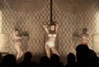 The video follows themes discussed in the song, particularly sexual exploitation of women.[19] According to Love, the content of the video was inspired by "acid flashbacks" and "old film stock".[28] "I love old pornography," Love said, "But I wanted to at the same time, you know... all of the [music] videos for years that have put stripping or half-naked women on a pedestal, I wanted to sort of show the degrading experience that it is."[28] Siegel notes that the music video replays Love's "well-known past as a stripper through performances that are more threatening than erotic."[19] An article in Spin described the aged footage in the video as avant-garde.[29] Many of the scenes in the video aesthetically mimic early-20th century silent films and talkies, with faux-aged cinematography and lapses in audio and visual synchronization.[29]