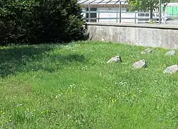 Vipava is the site of five known mass graves from the end of or after the Second World War. The Cemetery Mass Grave (Slovene: Grobišče pri pokopališču) is located next to the southwest wall of the Vipava Cemetery. It contained the remains of eight Slovene civilians murdered by the Yugoslav Army on July 14, 1945. The identities of six victims are known. The remains of six were exhumed in 1999 and reinterred in the cemetery.[4] The Military Cemetery Mass Grave (Grobišče na vojaškem pokopališču) is located by the west edge of the First World War military cemetery. It contains the remains of 15 Chetnik soldiers killed in late April or early May 1945.[5] Three additional graves contain the remains of German prisoners of war that died of typhus at the nearby prison camp in 1945. The Vipava Field Mass Grave (Grobišče Vipavsko polje) extends south of the dairy to Močilnik Creek. It is partially covered by the freeway and contains a large number of remains.[6] The Princova Baronovka Mass Grave (Grobišče Princova baronovka) lies in the southern part of the town.[7] The Bevk Street Mass Grave (Grobišče na Bevkovi ulici) is located at Bevk Streek (Bevkova ulica) no. 16. Human remains were unearthed during excavations for the building there.[8]