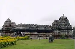 His court was adorned with some of the most notable of medieval Kannada language poets including the Jain poets Janna and Nemichandra, and the Brahman poet Rudrabhatta.[7][8] According to the historians Chopra et al., during his rule, the Hoysala kingdom consolidated into an independent empire commencing an age of "Hoysala imperialism".[9] His architectural legacy includes numerous ornate temples, the Kedareshwara temple, the Veera Narayana temple and the Amrutesvara temple.[7] He was ably supported in war and in administrative matters by his son, prince Vira Narasimha II, and crowned queen Umadevi. His other queen Cholamahadevi was a Chola princess. His daughter Somaladevi was given in marriage to the Chola monarch Kulothunga Chola III.[7]