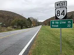 State Route 84 (SR 84) is a primary state highway in the U.S. state of Virginia. Known as Mill Gap Road, the state highway runs 14.94 miles (24.04 km) from the West Virginia state line near Mill Gap, where the highway continues west as West Virginia Route 84 (WV 84), east to U.S. Route 220 (US 220) at Vanderpool.