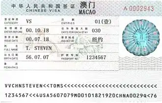 - ^ "Immigration Clearance of Non-residents of Macao". Macao SAR Government Portal.
